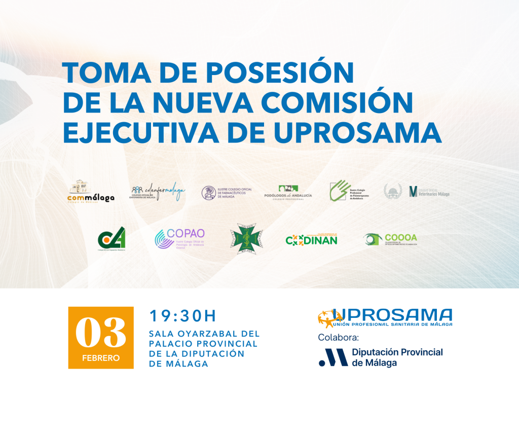 Durante el desarrollo del acto tendrá lugar la toma de posesión de D. Juan Antonio de Luque Ibáñez, presidente del Colegio Oficial de Veterinarios de Málaga, quien asumirá la presidencia de UPROSAMA para el nuevo periodo. Su incorporación al frente de la organización refuerza el carácter multidisciplinar de la entidad y su vocación de representación conjunta de las distintas profesiones sanitarias de la provincia.
